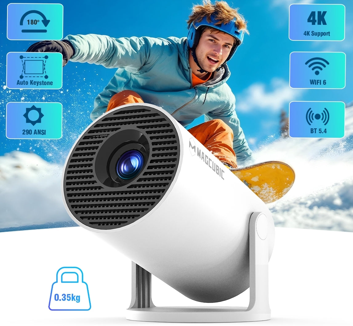 Original Magcubic HY300 Pro Projektor – gestochen scharfes Bild, 4K-Support & 180° Drehlinse. Perfekt für Schlafzimmer, Gaming & Filmnächte.